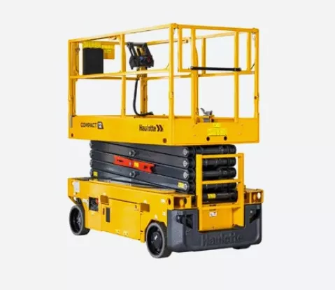 - Nůžková elektrická plošina 12 m – kompaktní plošina s elektrickým pohonem, vhodná pro interiérové práce, haly nebo situace, kde je požadavek na tichý a ekologický provoz.